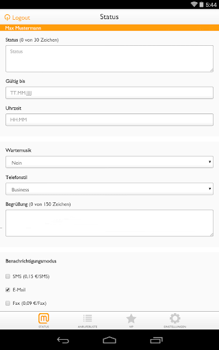 Der „Status“ ist Ihre persönliche Schaltzentrale im Mobile Office 360° Tool. Unter dieser Rubrik können Sie alle Einstellungen für Ihr persönliches Telefonsekretariat einrichten.