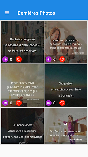 Dalam permohonan kami terdapat sebut harga dan peribahasa dari semua genre: cinta, kehidupan, motivasi, sedih , kebahagiaan, kebijaksanaan, kepercayaan, harapan, senyuman, kejayaan, hubungan manusia, keberanian, inspirasi dan lain-lain ...