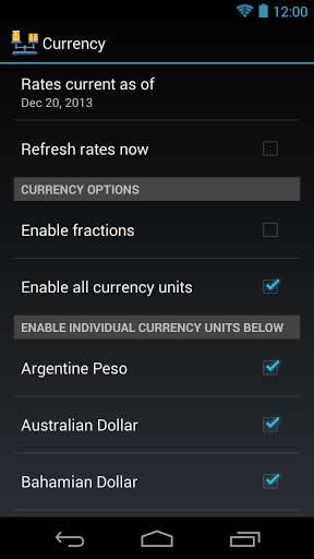 • Currency conversions - converts the major world currencies listed by the Canadian and European Central Banks