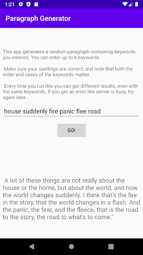 Anda boleh memasukkan sehingga 6 kata kunci dan sistem AI secara automatik akan menghasilkan perenggan berdasarkan kata kunci anda.Cubalah dan bersenang -senang!