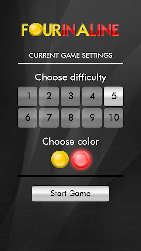 Four In A Line is a two-player game in which the players first choose a color and then take turns dropping colored discs from the top into a seven-column, six-row vertically suspended grid. The pieces fall straight down, occupying the next available space within the column. The object of the game is to get four of one's own discs of the same color next to each other vertically, horizontally, or diagonally before your opponent.
