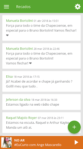 Aplicativo da Web Rádio Chape. Instale nosso aplicativo para acompanhar as transmissões da rádio, ver imagens AO VIVO através de nosso estúdio e também entrar em contato conosco pedindo músicas e deixando recados. Você também pode checar a programação completa da nossa rádio, ou interagir através de nosso chat.