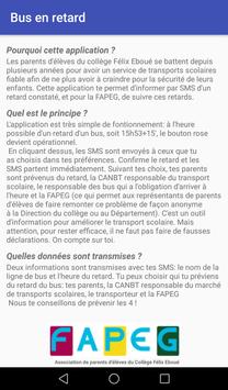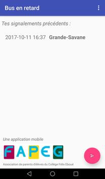 Tu es élève au collège de Félix Éboué de Petit-Bourg en Guadeloupe et tu en as marre d'arriver tard chez toi à cause du bus qui est souvent en retard ? Utilise cette application pour signaler systématiquement les retards de ton bus scolaire. Les adultes ne pourront plus ignorer que ces retards existent, et ils trouveront une solution !