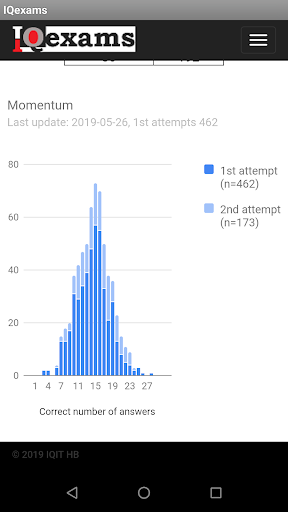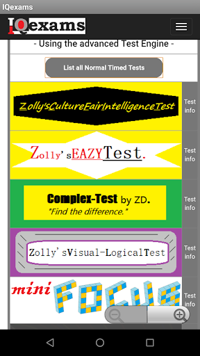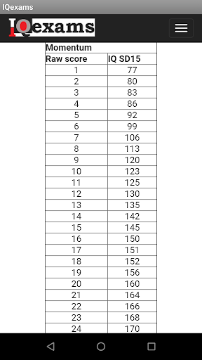 The tests are of type Spatial, Numerical and Verbal or Mixed. Just click the Test Info button to get more detailed information. All tests have score histogram curves that are regularly updated. If you do more than 3 tests, you will get a Real IQ calculation presented.
