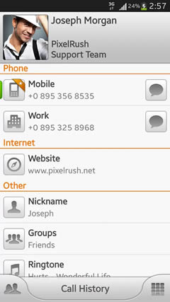 Quick switching between contact’s information and call history (lower panel),