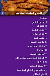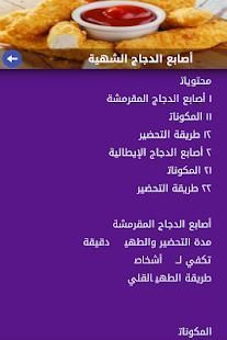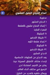 التطبيق يحتوي على قائمة متنوعة من الوصفات و الأكلات السريعة و السهلة التحضير وبالمكونات والمتبلات الشائعة في العالم العربي ويتضمن مختلف طرق طهي الدجاج من تتبيل و سلق و تحمير و طرق شواء و طريقة تحضير في الفرن وبأسهل الطرق مع التفصيل الممل.