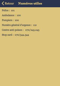 - Annuaire contenant les numéros utiles/d'urgence.