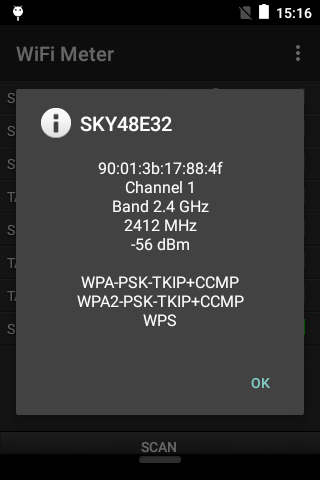 Meter WiFi adalah pengimbas WiFi yang mudah yang akan membolehkan anda melihat dan mengukur rangkaian WiFi yang dapat dilihat oleh peranti Android anda. Nama perkhidmatan, saluran, status keselamatan dan kekuatan isyarat boleh didapati dalam senarai pengemaskinian yang berterusan dengan butiran tambahan seperti alamat MAC dan konfigurasi keselamatan yang terdapat pada satu akhbar. Pengimbasan boleh dihentikan dan dimulakan pada kehendak dan hasil boleh dieksport ke fail data untuk menyediakan gambar kekal persekitaran WiFi anda.