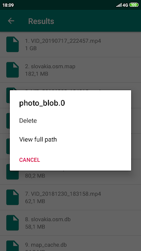 Big File Finder is an app that allows you to easily find for the biggest files in your device or memory card. You can then delete these files or copy their absolute path to the clipboard.