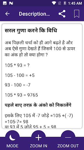 The app extensively explains the theory behind the mental calculation system as described in vedas.