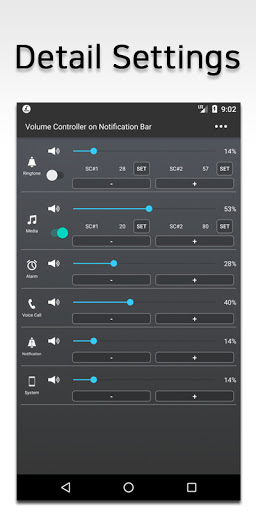 Aplikasi ini dibangunkan untuk membantu pengguna mengawal jumlah tanpa merebut telefon pintar dan butang kelantangan sampingan.Selepas itu, anda boleh dengan mudah mengawal jumlah dengan menatal ke bawah bar pemberitahuan dan mengklik ikon kelantangan.aplikasi.Terdapat banyak aplikasi yang baik untuk mengawal jumlah, tetapi mereka tidak menyediakan fungsi pintasan.Anda boleh menetapkan dua peratusan tertentu dan menggunakannya dalam pengawal pada bar pemberitahuan.dan & quot; media & quot;Kawalan kelantangan.Anda boleh mengawal jumlah lain seperti & quot; panggilan suara & quot;, & quot; penggera & quot;, dan & quot; System & quot;jilid, tetapi anda boleh memilih & quot; nada dering & quot;dan & quot; media & quot;Pengawal Kelantangan pada Bar Pemberitahuan.semasa reboot]