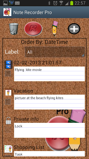 is application and Widget for Writing Note, Recording Note, Picture Note , Video Note ,Check list Note & Contact