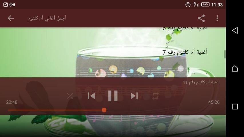 هنا تتيح لك تطبيقات اندرويد مثبتة في هاتفك موبايل 20,000+ مستحدمين يحملون أجمل أغاني أم كلثوم