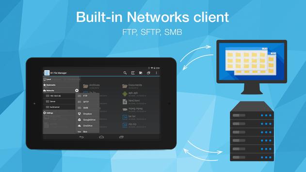 - Browse the content of the internal storage, external SD card, USB drives, cloud storages and networks