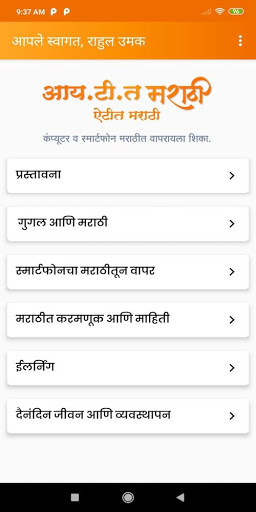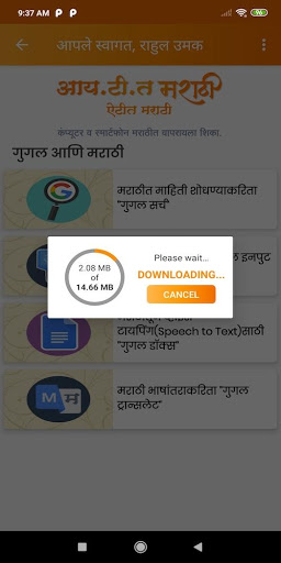 'untuk meningkatkan kecekapan kehidupan harian i.t. Bagaimanakah anda boleh menggunakan cara yang menarik (teknologi maklumat)? 'Ini adalah usaha untuk mengajar. Alat Google, aplikasi produktiviti, aplikasi eLearning akan tahu apa yang perlu dilakukan. / Untuk mempelajari teknologi, anda harus menggunakan bahasa Marathi anda secara sedar. Kami akan cuba mengekalkan persahabatan anda dengan dunia yang berubah dan menjaga bahasa ini ke kelas bahasa ini.