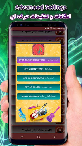 شما میتوانید بعد از شنیدن هر رینگتون از صفحه باز شده ، آن را به عنوان زنگ موبایل یا صدای هشدار و یا اعلان ها قرار دهید .