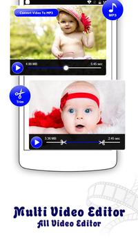 Multi Video Editor App through you Edit your favorite Video file Editor in your favorite video like Slow Motion, Fast Motion, Trim Video, Video Converter, Video to Mp3, Video Compressor, Size Reduce, Video Mute, Reverse Video, Remove Audio, Audio Video Mixer.