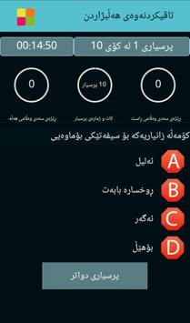 1. تاقیکردنەوە ی هەڵبژاردن بۆ 10 نمرە ، 20 نمرە ،50 نمرە بە بەبەکارهێنانی کات یان بە بێ بەکارهێنانی کات ، هەروەها دەتوانیت بۆ مانگی یەکەم ، وەرزی یەکەم ، مانگی یەکەمی وەرزی دوەم یان کۆتایی وەرزی دوەم تاقیکردنەوە بکەیت و ئەنجامەکان ببینیتەوە.