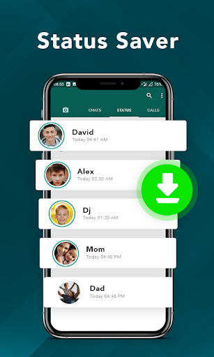 Ini adalah alat penyimpan alat yang membolehkan pengguna memuat turun fail media termasuk imej dan video dari status Whats Whats kepada peranti itu. Dengan ciri Muat turun Status ini, anda juga boleh berkongsi media yang dimuat turun dengan rakan-rakan anda.