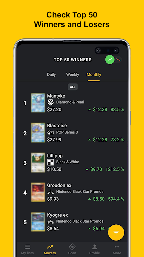 With our app you’ll always have your collection with you, and never miss out on a trade again using our card scanner with up-to-date prices.