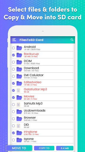 FilesToSd, Pindah ke Kad SD, Telefon ke SD Pemindahan kad, Pindahkan Fail Media ke Kad SD, Pindahkan fail ke Sd dan Salin ke Kad SD.