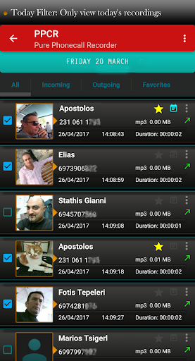Penapis Hari, Hanya Lihat Rakaman Hari Ini