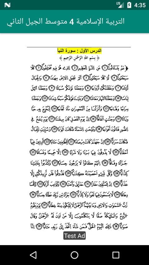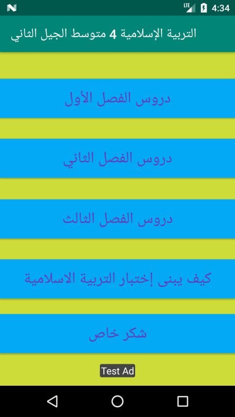 A program for Islamic Education 4 The average of the second generation contains all the lessons in detail, divided according to chapters and each chapter according to the lessons so that helps to search in an organized manner.