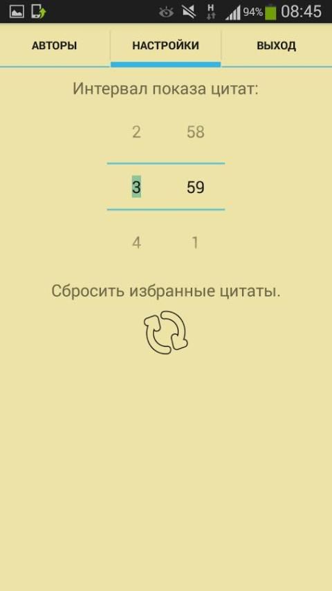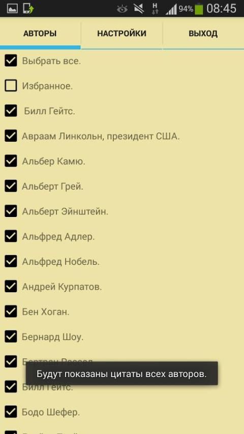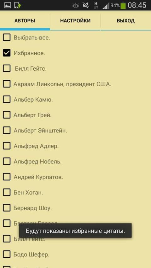 - в настройках можно выбрать высказывания отдельного автора/ов;