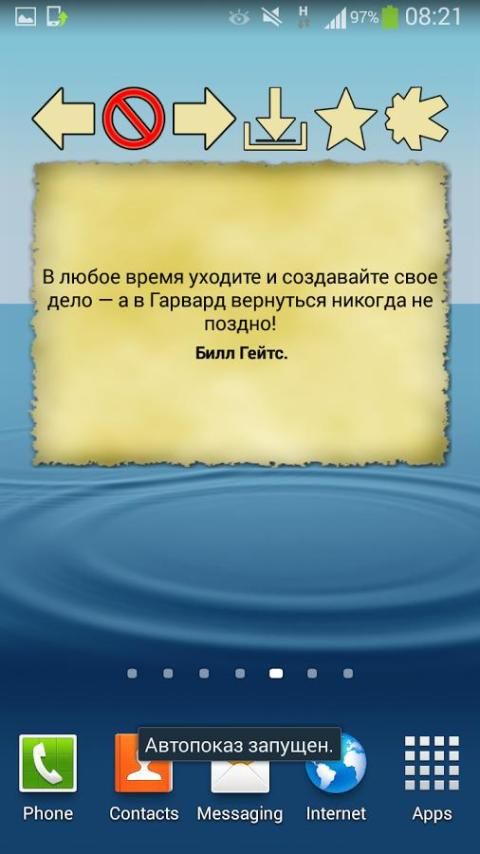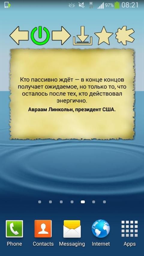 "Quotes of successful people" - an application made in the form of a widget, which in its essence is a business quote pad, which collected 269 citations people have achieved success in business, politics and other areas of human activity. For ease of use, the application is made in the form of a widget that is easy navigirovatsya between quotations or launch their automatic update.