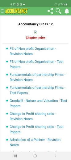 This app contains notes and Q & A of all the chapters included in the CBSE Class 12 NCERT Accountancy Book :