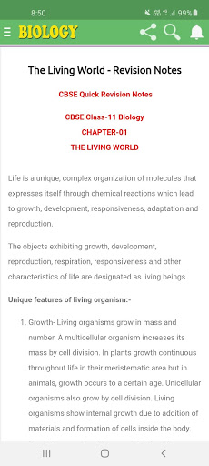 This app contains notes and Q & A of all the chapters included in the CBSE Class 11 NCERT Biology Book :