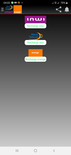 من خلا هذا التطبيق يمكنك تعبئة هاتفك بسهولة بجميع انواع الشبكات الاتصال في المغرب من بينها انوي و اتصلات النغرب واورونج