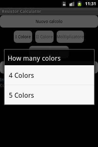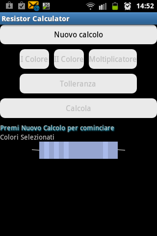 A simple and useful program for the calculation of: 1. values of resistor of four and five colors. 2. the values given by the application of Ohm's law. 3. Resistor sum (in series and parallel)