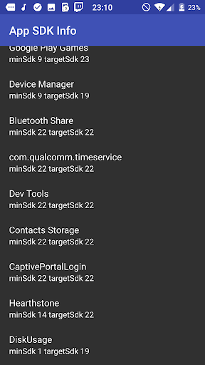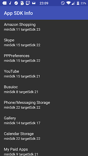 This app lists all installed apps with their minSdkVersion and targetSdkVersion
