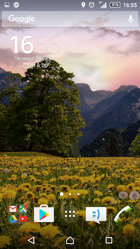 Ketuk «Skrin Laman Utama» -> Tekan lama -> Wallpaper -> Live Wallpaper -> Pilih "Gunung Dandelions Pro" dari Senarai.