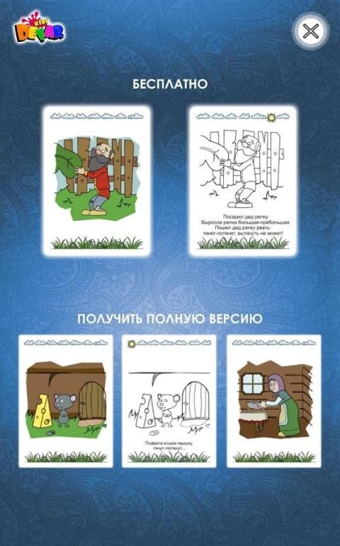В демонстрационной версии приложения доступна только одна сцена, в полной версии можно разукрашивать и оживлять все сказки целиком!
