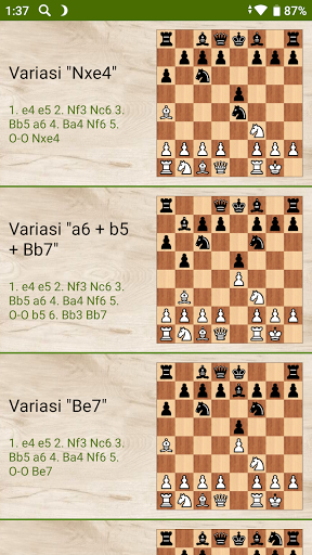 Versi percuma aplikasi "Catur - Pembukaan Ruy Lopez" mengandungi 81 latihan menarik mengenai kombinasi kemenangan, memperoleh kelebihan, memenangi hadiah dan bermain dalam beberapa gerakan. Dalam versi lengkap aplikasi, kira-kira 500 tugas menanti anda.