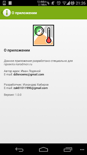 Permohonan ini direka khusus untuk projek "Pemantauan Rakyat" (Narodmon.ru).