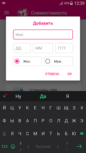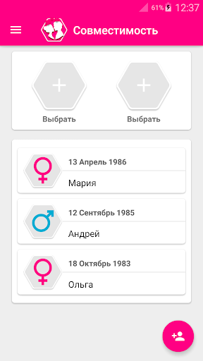 С помощью приложение Вы сможете узнать совместимость в любви. Вы просто добавляете человека и приложение рассчитывает совместимость мужчины и женщины в любви или узнать совместимость в дружбе.