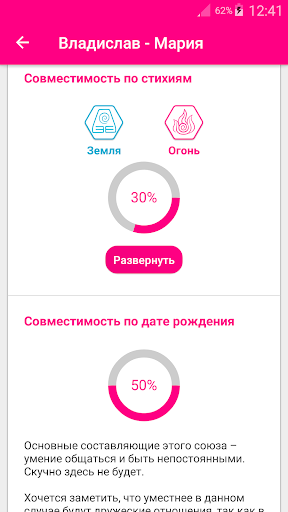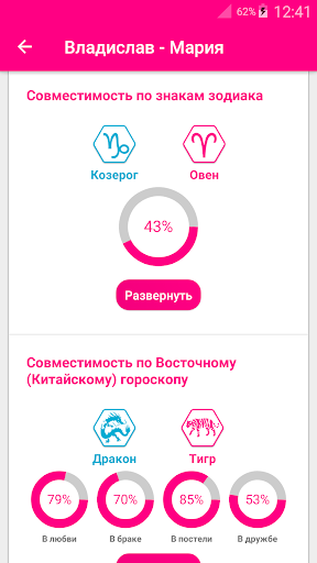 Совместимость знаков зодиака имеет достаточно большую историю и достаточно распространено, многие из нас слышали что такое Гороскоп совместимости, но помимо совместимость знаков, приложение "совместимость в любви" также рассчитывает совместимость по стихии.