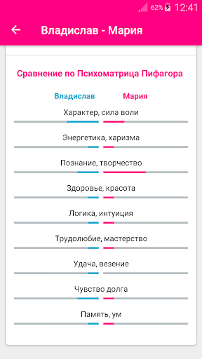 С помощью сравнение по Психоматрице Пифагора Вы сможете сравнить следующие показатели с партнером и узнать совместимость в любви: