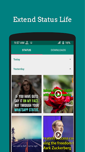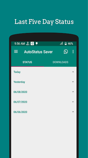 Aplikasi ini boleh dengan mudah menyimpan status video WhatsApp dan status imej-imej dengan cepat dan percuma. Best muat turun gambar dan status video tanpa meminta untuk menghantar status mereka. Jangan risau tentang status yang hilang rakan-rakan anda. Aplikasi status WhatsApp ini memanjangkan hayat status WhatsApp anda. AutoSave untuk status WhatsApp lima hari terakhir dan status yang telah tamat tempoh akan dihapuskan secara automatik. Anda boleh menyimpan status WhatsApp anda kekal.
