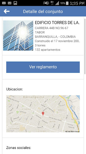 Ver datos del conjunto como su ubicación en un mapa dirección exacta y otros datos de interés.