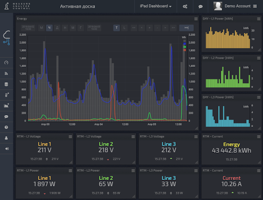 smart-MAC Dashboard for real-time monitoring and visual analysis of historical data from smart-MAC devices, which serve for monitoring and accounting electricity, water, gas, heating, temperature, humidity, lighting and other resources, conditions, events.