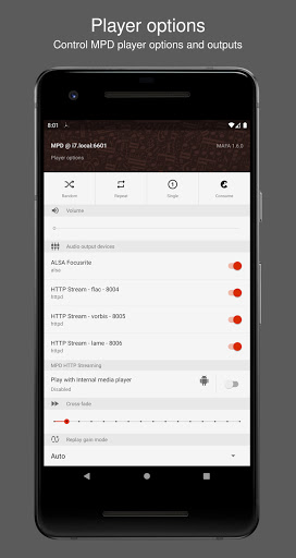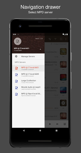 : Dengar muzik anda dari MPD pada telefon atau tablet anda menggunakan pemain muzik dalaman atau luaran.