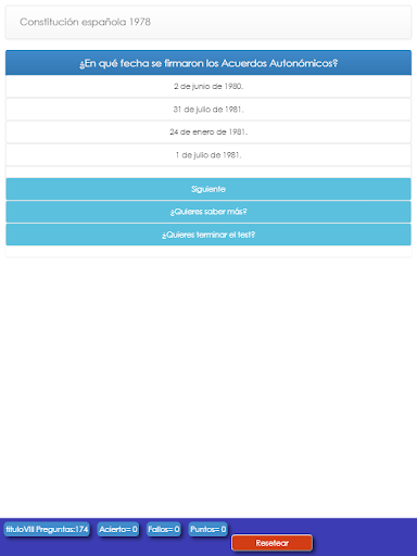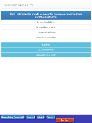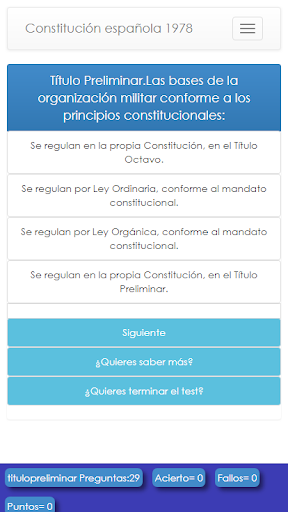Es la web app de la página web testdeoposiciones.com . En esta página podrás encontrar multitud de test de oposiciones. Guardia Civil, Policía Naiconal, Auxiliar administrativo de la Junta de Andalucía. Constitución Española , Inglés... Etc