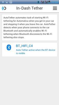 In-Dash Tether is a companion app for the In-Dash USB stick, it automates the task of starting the WiFi tethering on the smartphone when you get in your car and stopping it when you leave it.