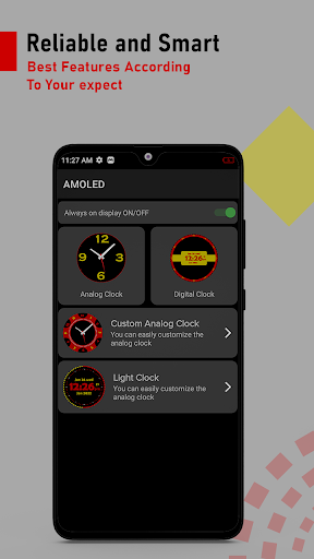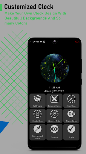 It can show different color of night clock. Set digital clock color. Always on display have a digital alarm clock on your home or lock screen. You can set digital clock design with beautiful colors. Apply any picture on screen. Change your analog clock color.