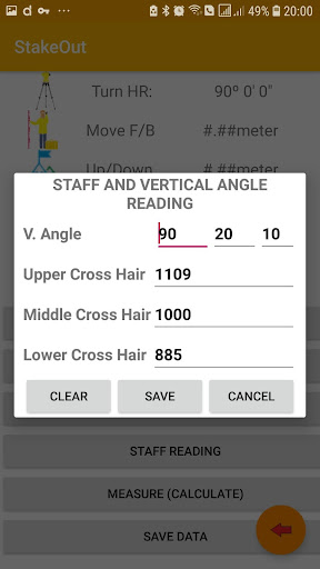 Aplikasi yang menyediakan langkah demi langkah Tinjauan Stake Out menggunakan teodolit digital dan analog, aplikasi akan memberikan pengiraan kepentingan secara automatik dan akan menyimpan data saham yang boleh dimuat turun dalam format Excel CSV
