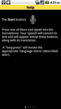With this application, you can speak in English and hear the Spanish translation, or you can speak in German and hear the French equivalent ... and see the written translations in both languages at the same time.